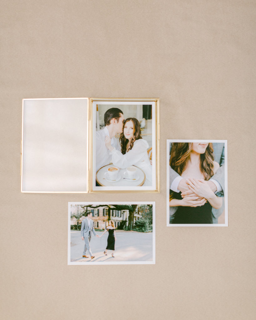 One of my favorite ways to display loose prints is in the Gold Glass Keepsake Box. Each keepsake box is handmade and features an antique gold finish to beautifully display your captivating images. Inside are bordered prints of either the favorites or even every image from your session. Keepsake boxes are perfect for showcasing your images and keeping them safe. Simply untie the ribbon and lift your prints out of the box to look through them. Feel free to frame some of the prints as well.